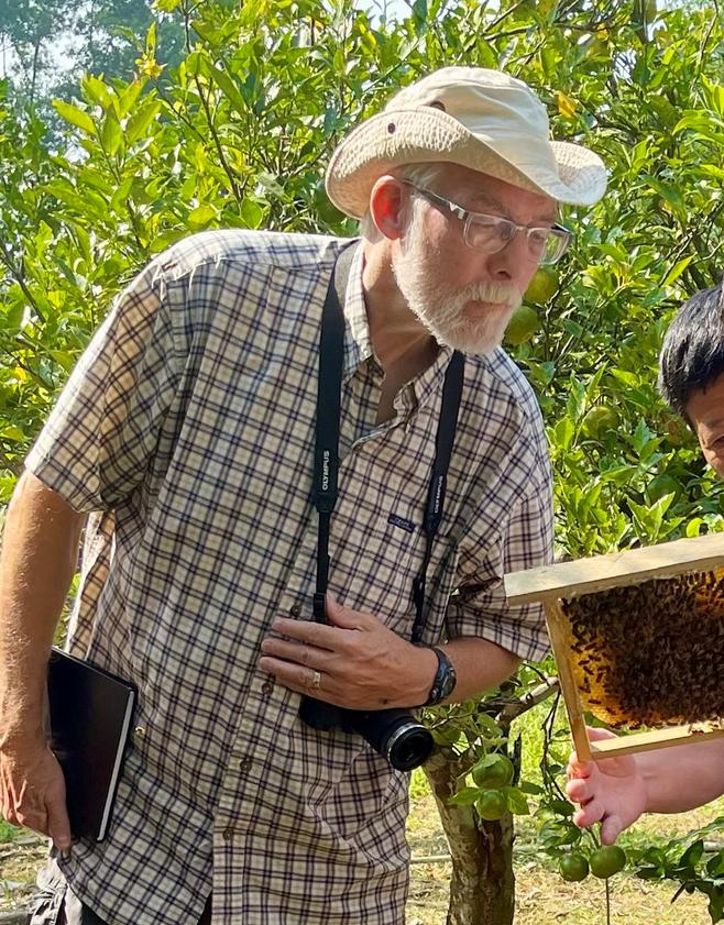 Dr. Gard Otis is an entomologist who is best known for his activities with honey bees. After graduating from Duke University (B.S., Zoology, 1973), he attended the University of Kansas where, under the supervision of Orley “Chip” Taylor, he studied the ecology of rain forest butterflies and population dynamics of Africanized honey bees (PhD, Ecology, 1980). In 1981, they collaborated on studies of the mating behavior of honey bees in Venezuela. Since joining the University of Guelph in 1982, he studied the biology of tracheal mites, bred bees resistant to them, has been involved in research on all fourteen species of honey bees, and led a highly successful beekeeping development project in Vietnam.