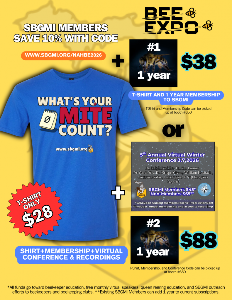 2026 North American Honey Bee Expo Specials SBGMI MEMBER COUPON CODE HERE Quick View $38.00 26′ NAHBE Bundle #1 Shirt + MembershipSelect options This product has multiple variants. The options may be chosen on the product page Quick View $88.00 26′ NAHBE Bundle #2 Shirt + Conference + MembershipSelect options This product has multiple variants. The options may be chosen on the product page Quick View $28.00 26′ NAHBE Bundle #3 Shirt OnlySelect options This product has multiple variants. The options may be chosen on the product page Quick View $65.00 26′ NAHBE EZPZ Pin Test for HygieneAdd to cart